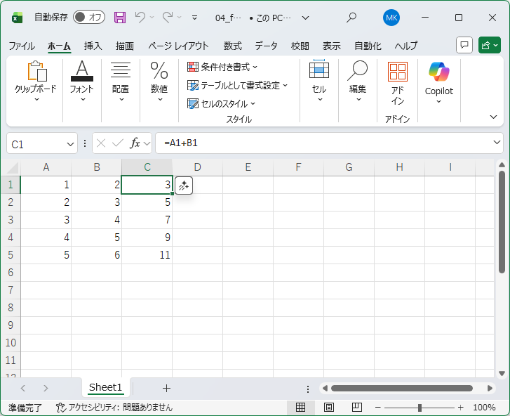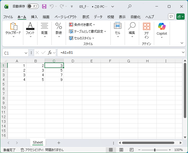 次は式を含むExcelファイルを読み込ませてみます。