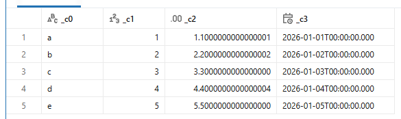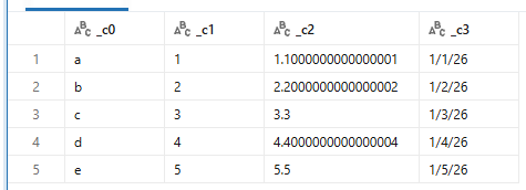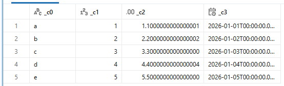 スキーマを推論してくれるので、日付や数字もそれぞれの型として認識してくれています。